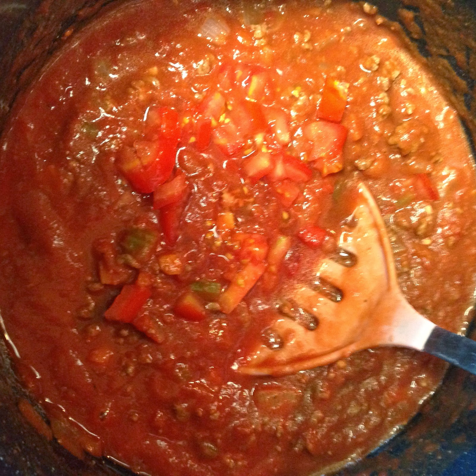 8. Stirring occasionally, allow the bolognese to cook for about an hour before it is ready to serve.